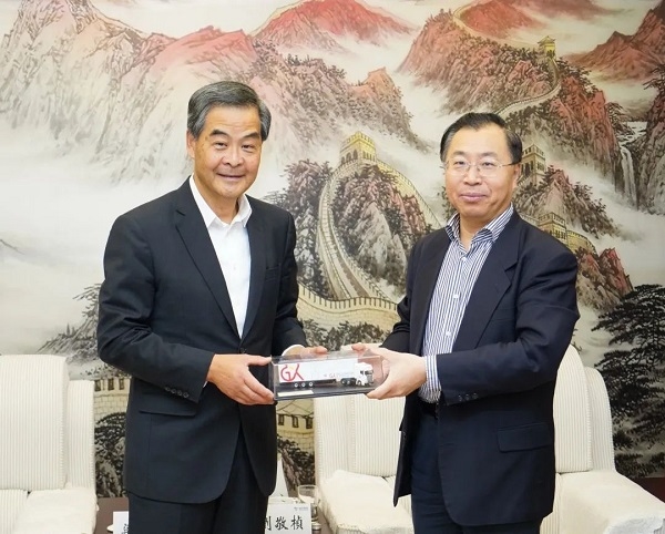 12月9日,全国政协副主席、共享基金会主席梁振英一行赴沙龙娱乐城 调研,并与沙龙娱乐城 党委书记、董事长刘敬桢进行座谈交流。