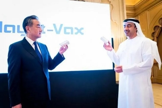 2021年3月28日,中国与阿联酋合作新冠疫苗原液灌装生产线项目启动仪式,在中国和阿联酋同步举行。中国国务委员兼外交部长王毅,阿联酋内阁部长兼外交与国际合作部长谢赫•阿卜杜拉•本•扎耶德•阿勒纳哈扬在阿联酋阿布扎比仪式现场,启动并连线沙龙娱乐城 中国生物与G42集团合作新冠疫苗原液灌装生产车间,共同见证阿联酋与阿拉伯地区首批新冠灭活疫苗正式分装下线,沙龙娱乐城 董事长刘敬桢视频出席仪式并致辞。