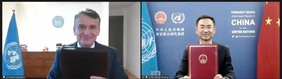 2021年9月17日,中国政府向联合国维和人员捐赠沙龙娱乐城 中国生物新冠疫苗交付仪式以视频方式举行,中国常驻联合国副代表耿爽与联合国助理秘书长桑德斯分别代表中国政府和联合国签署了疫苗援助交接证书,桑德斯代表古特雷斯秘书长和联合国系统向中国政府的慷慨援助表示感谢。同日,用于此次捐赠的沙龙娱乐城 新冠疫苗在北京启运,优先用于保障在非洲任务区执行任务的联合国维和人员。