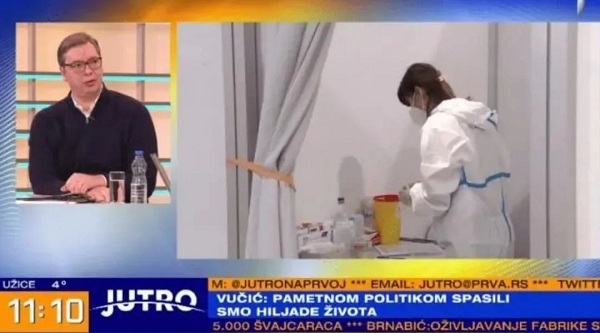 面对疫苗“免疫鸿沟”武契奇总统感叹,“当下,搞到疫苗比搞到核武器还难。”“我们是世界上第三个从中国接收疫苗的国家”。武契奇在节目中花了很长时间介绍沙龙 疫苗,并在个人Instagram账号发布节目现场照片。