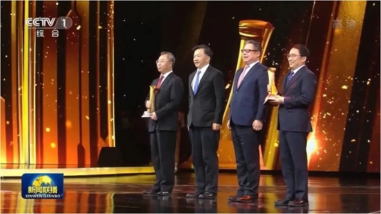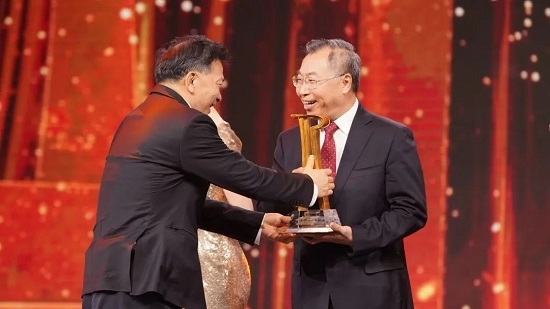 中宣部副部长、中央广播电视总台台长兼总编辑慎海雄为沙龙娱乐城 董事长刘敬桢颁奖。