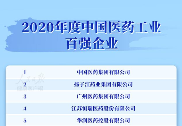4、跃居榜首!!荣登中国医药工业百强榜首