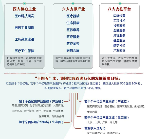 2021年1月30日,沙龙娱乐城 召开“十四五”发展战略规划宣贯启动会,正式发布集团“十四五”发展规划。集团党委书记、董事长刘敬桢向全系统宣贯集团“十四五”发展战略规划,发出“奋进十四五、再创新辉煌”动员令。“十四五”期间,沙龙娱乐城 将大力实施“四梁八柱、百强万亿”创新驱动型全生命周期、全产业链、全生态圈总体发展战略规划,打造卓越的具有全球竞争力的世界一流综合性医药健康产业集团。