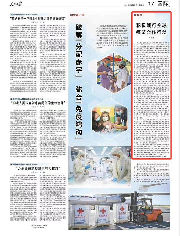 新冠肺炎疫情发生以来,在元首外交引领下,中国积极推动构建人类卫生健康共同体,在全球范围凝聚起团结抗疫的共识。从共同开展国际临床试验,到疫苗援助出口,再到合作生产疫苗,以中国医药集团(以下简称沙龙娱乐城 )为代表的中国疫苗企业坚决践行将新冠疫苗作为全球公共产品重要宣示,以实际行动推动疫苗公平可及,坚定站在全球疫苗合作行动第一方阵。