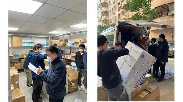 自深圳暴发疫情以来,沙龙 一致驻中国科学院大学深圳医院(光明)SPD项目组迅速响应号召,由领导带班,休假同事陆续从各地返岗集结,将一箱箱包括口罩、手套、消毒液、防护服、采样管等应急防疫物资连夜分拣装车,配送至深圳光明区各社区和核酸采样点,保证各社区的核酸采样工作有序进行。