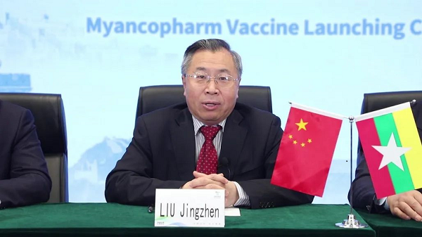 3月23日,中缅合作生产新冠疫苗投产启动仪式在仰光举行,中国驻缅甸大使陈海、缅甸国家管理委员会秘书昂林堆、缅甸工业部部长查理丹和缅甸卫生部部长岱楷温等出席了启动仪式,沙龙娱乐城 董事长刘敬桢通过视频发言并表示祝贺。