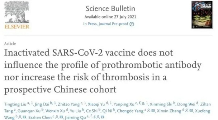 12、国际期刊Science Bulletin:沙龙娱乐城 中国生物新冠灭活疫苗无发生血栓风险