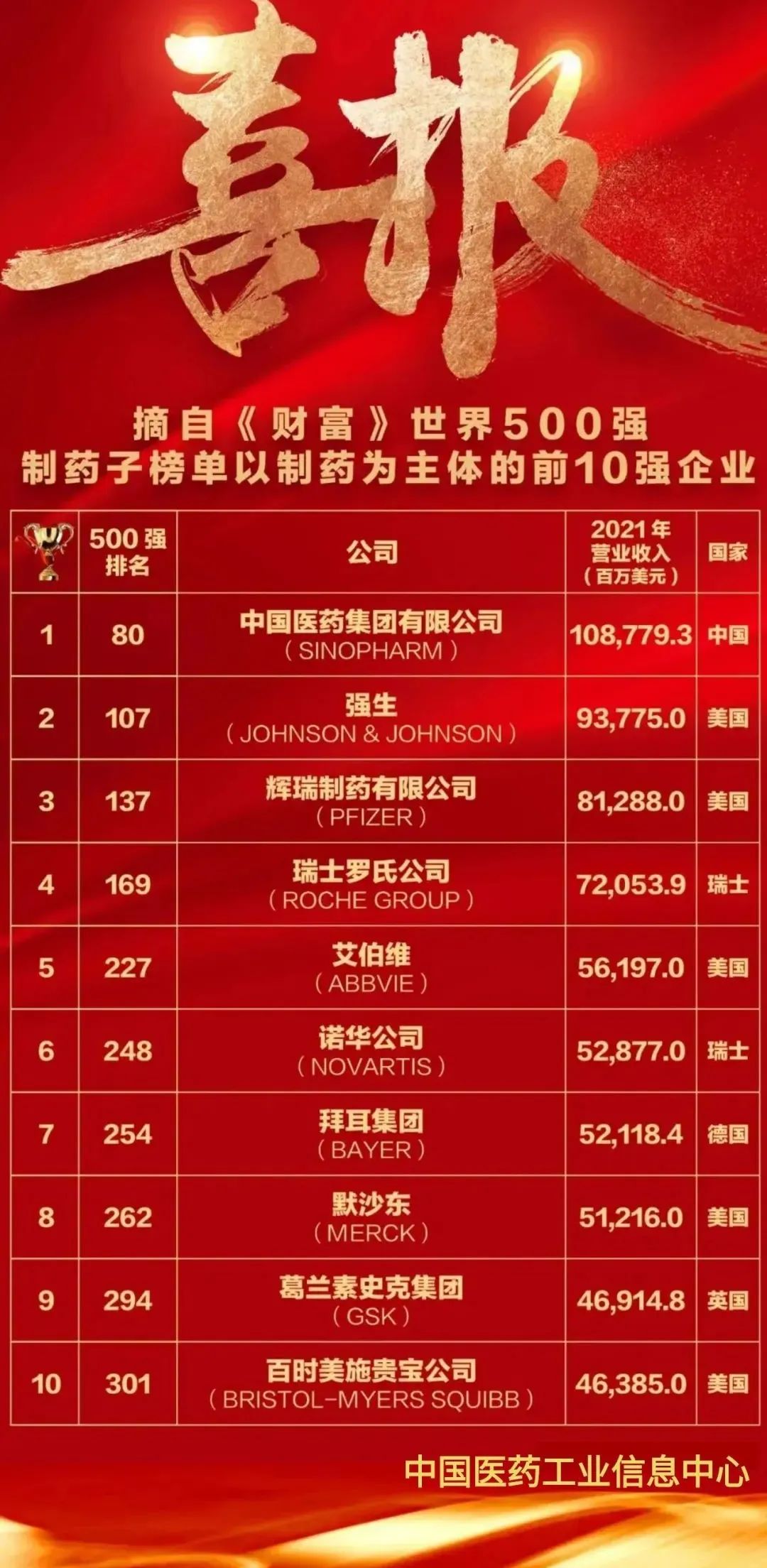 重磅!沙龙娱乐城 位列世界500强第80位!制药企业第1位!