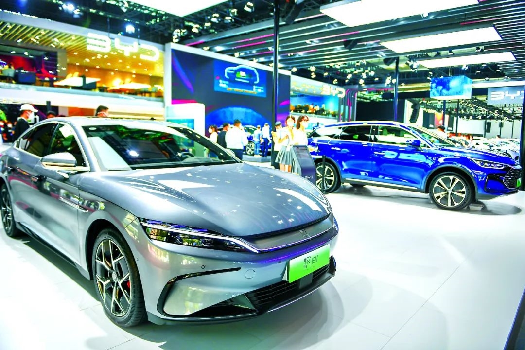 作为中国汽车品牌强势崛起的代表之一,比亚迪今年首次进入世界500强。图为长春汽博会上展出的比亚迪新能源车型。 新华社记者 张楠 摄
