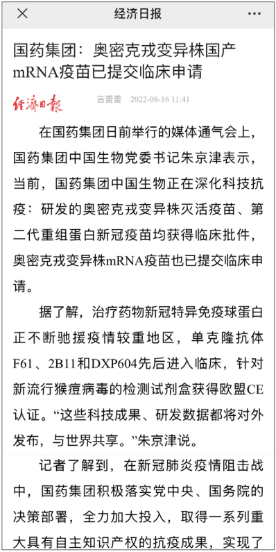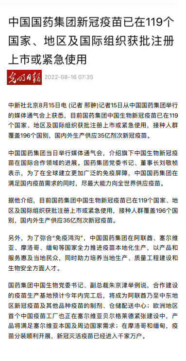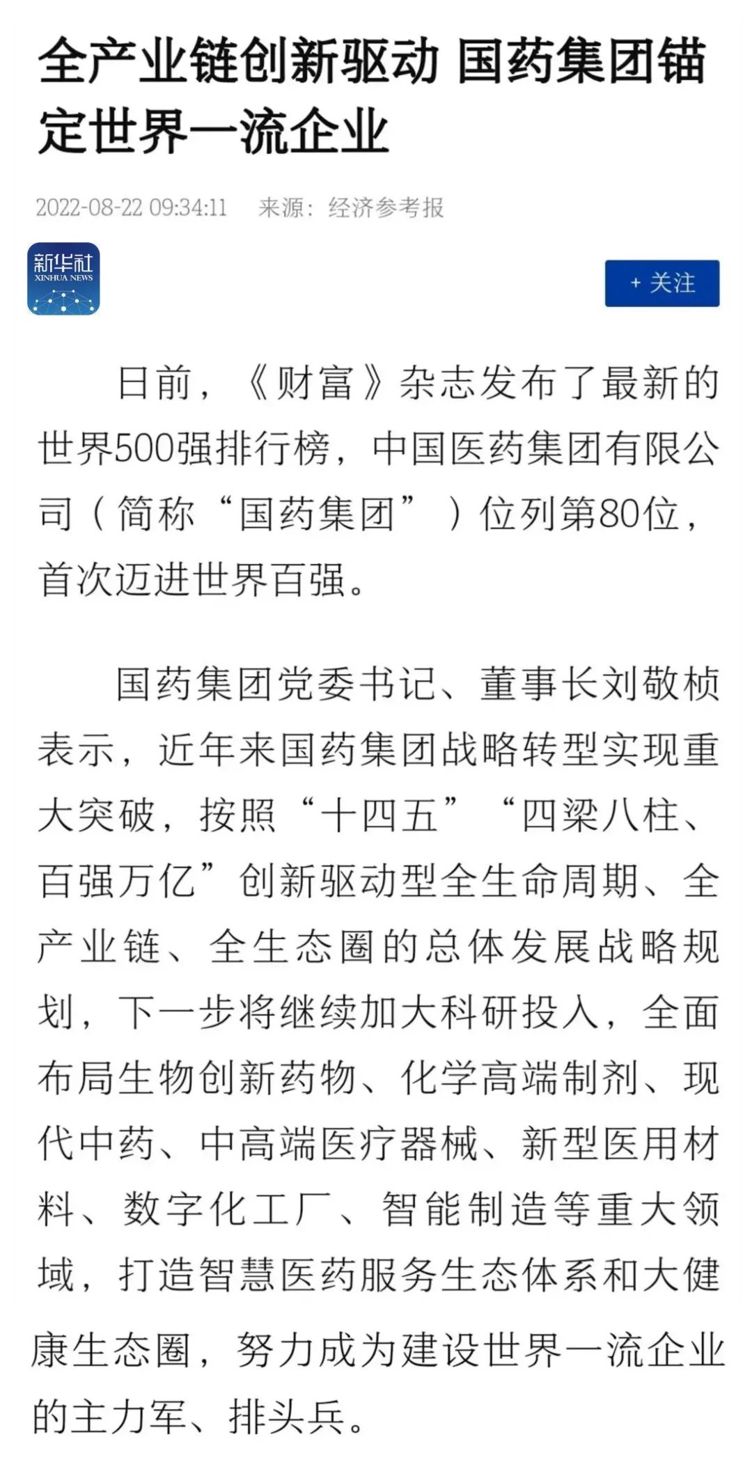 8月15日,“沙龙娱乐城 创建世界一流企业暨跃升世界五百强第八十 位列全球制药企业首位媒体通气会”在京举行。活动介绍党的十八大以来沙龙娱乐城 改革发展各项事业取得的成就,及成为“世界500强第80位、全球制药企业首位”的成果,受到媒体广泛关注报道,引起强烈反响。人民日报、新华社、中央广播电视总台、经济日报、中国日报、中国新闻社、工人日报、中纪委沙龙新闻等30余家中央媒体及重点主流媒体都纷纷对沙龙娱乐城 科技创新、“十四五”规划推进情况、上市公司治理、专业化整合、针对奥密克戎毒株疫苗研发情况,以及国际抗疫合作、疫苗海外联合生产等情况进行了详细报道。本期对部分报道摘录如下。