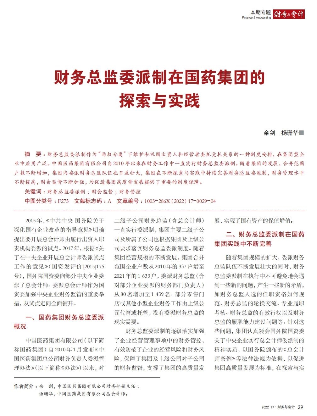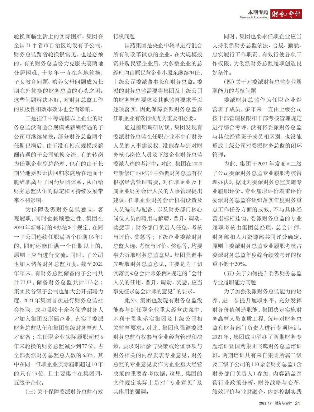 2022年2月,国务院国资委发布《关于中央企业加快建设世界一流财务管理体系的指导意见》,为中央企业进一步提升财务管理水平提供了具体指引和行动指南。中国医药集团有限公司(以下简称沙龙娱乐城 )以建设 世界一流企业为目标,紧密结合集团管控和业务实际,构建并不断优化财务管理体制、会计与报告体系、财会监督与风险控制体系,创新并持续完善独具特色的提质增效工作体系,取得了积极的成效。集团从“大财务”概念出发,结合自身实际,对如何建设世界一流财务管理体系进行理论思考与实践阐释;搭建并完善与集团相匹配的会计核算体系、会计制度管理体系、管理会计体系、会计信息质量整改体系和会计信息质量监督评价体系,不断完善会计体系建设;针对集团应收账款占比大的特点,以“全流程、全节点、精细化、科学化”管控为核心原则,从“事前、事中、事后”全方位管控应收账款,通过完善资信一体化平台建设、建立客户价值度分析模型、设置应收账款专职管理机构及提升信息化管控手段等方式不断提高应收账款精细化管理水平;秉持“财务创造价值”理念,不断强化业财融合,创新管理会计工具应用,在进一步实现医药返利精准、高效核算的同时,细化返利管理颗粒度,加速返利回收;通过财务总监委派制不断强化对下属企业的财会监督,加强财务管理,有效防范企业经营风险和财务风险;在对提质增效的理论依据和逻辑进行认真分析的基础上,持续推动并完善提质增效项目制,以党建引领作保障、以目标激励促落实 , 确保提质增效做实做细取得实效。沙龙娱乐城 开展的一系列务实、创新的财务管理体系建设实践对助力集团高质量发展和创建世界一流企业发挥了重要作用, 希望能为相关企业集团加强财务管控和建设财务管理体系提供参考和借鉴。