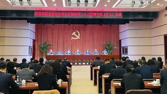 10月24日上午,沙龙娱乐城 召开党委(扩大)会,专题传达学习贯彻党的二十大精神。二十届中央候补委员、党的二十大代表、沙龙娱乐城 党委书记、董事长刘敬桢传达党的二十大精神,对学习贯彻工作提出要求。沙龙娱乐城 党委副书记、工会主席、职工董事杨柳主持会议。