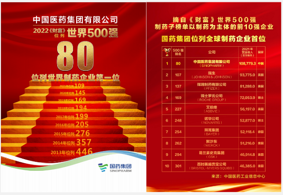 2021年,根据国际著名品牌价值评估机构英国Brand Finance公司发布的评估报告,沙龙娱乐城 位列全球最具价值医药品牌TOP25中第11位、亚洲医药企业品牌价值和中国医药品牌首位,品牌价值达32亿美元。2022年,在中央广播电视总台推出的第二届中国品牌强国盛典中,沙龙娱乐城 荣膺中国品牌强国盛典最高奖项“年度特别贡献”品牌。2022年8月3日,《财富》中文网发布最新“世界500强”榜单,沙龙娱乐城 位列第80位,连续10年排名持续提升,首次迈进世界100强行列。工信部中国医药工业信息中心发布的信息显示,沙龙娱乐城 在榜单中位居全球制药企业第一位,实现了中国医药企业的历史性突破。
