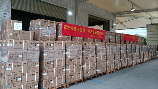 玉屏风颗粒是国家中医药管理局推荐预防新冠病毒的唯一中成药。作为玉屏风颗粒的生产单位,环球制药持续强化药品储备供应,全力保产保供,生产线24小时满负荷运行,车间一线和检验组三班轮转,仓库、物流配送一刻不停。近半月,共生产玉屏风颗粒约3168万袋,日产量从120万袋提升至270万袋。