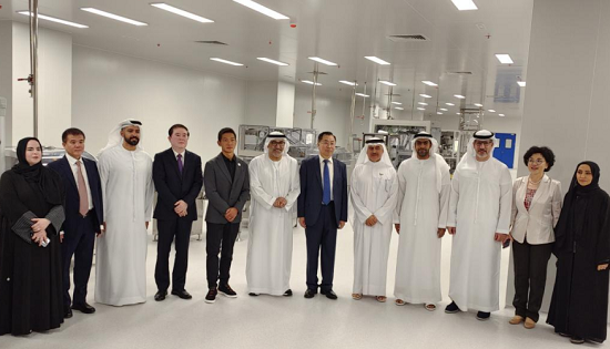 代表团还出席了沙龙娱乐城 与阿联酋G42集团的合资企业哈雅生物的生命科学园竣工仪式。刘敬桢董事长和G42集团CEO肖鹏分别做了致辞,并参观了新建成的疫苗车间。哈雅生物的生命科学园占地300余亩,建成后将实现年产能2亿剂疫苗和抗体药物,成为当地最大的生物产品生产工厂。