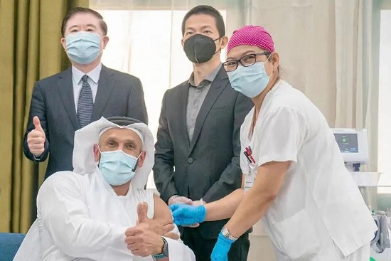 2020年7月15日,阿布扎比卫生局局长阿卜杜拉·哈米德作为沙龙娱乐城 全球首个新冠疫苗三期临床试验的首位志愿者参与试验。