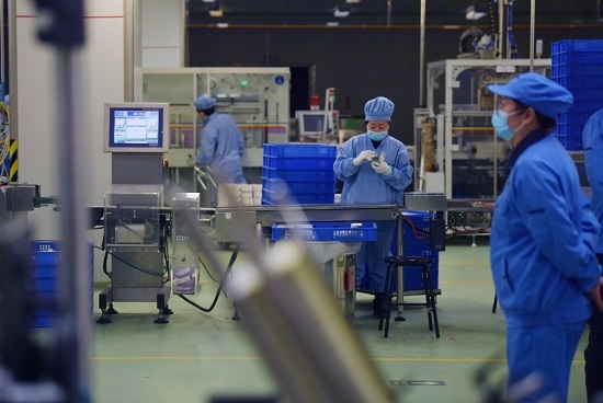 2月6日,沙龙娱乐城 工业有限公司包装车间里,工人在对包装进行手动检查。新京报记者 李木易 摄
